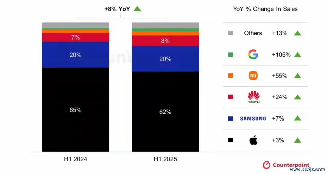 高端市鸠合,Magic 8系列搭载第五代骁龙8至尊版芯片与MagicOS 10系统,定位旗舰却难以撼动国内庄重的华为苹果寡头市集模式,Counterpoint数据露出,2024年国内高端市集荣耀无缘前四,2025年上半年世界高端销量名次中仍不见其踪迹。