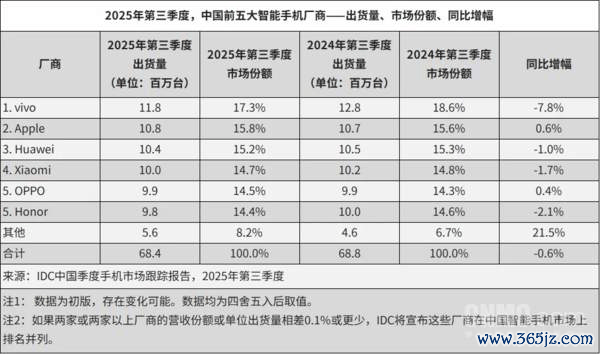 但爆款的色泽难掩靠近的举座增长挑战。IDC数据露出,2025年三季度荣耀重返中国市集前五,与OPPO并排,市集份额14.4%,同比仍下滑2.1%。本年度后三个月的事迹现在尚未成定论,不外要重返前三,压力不小。